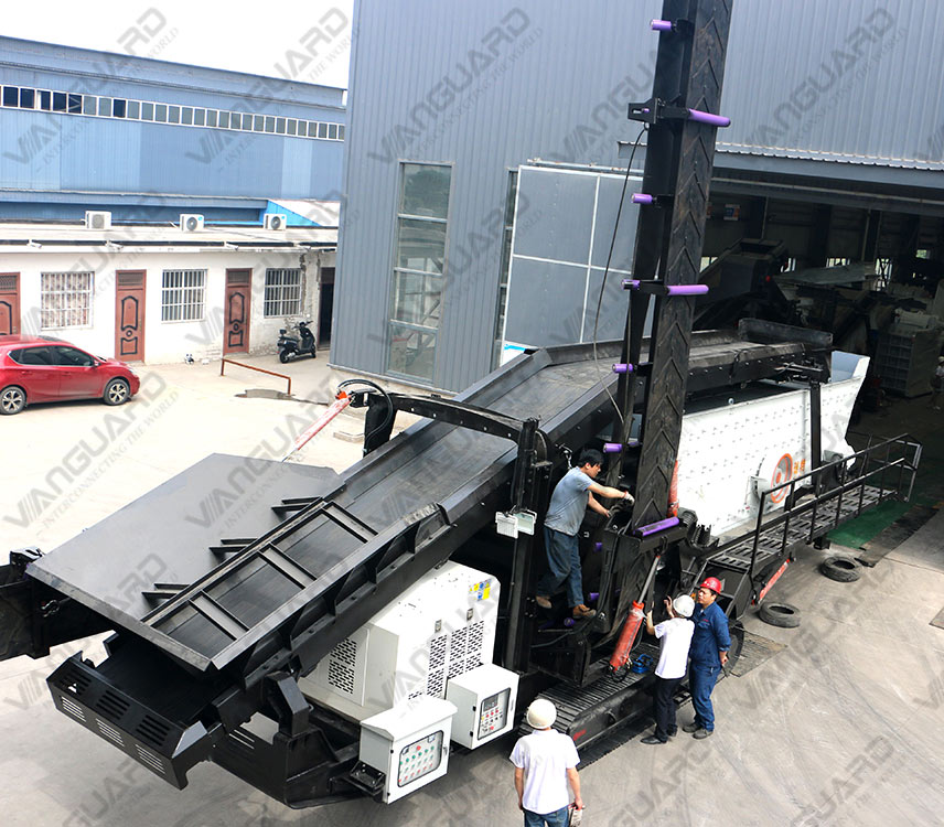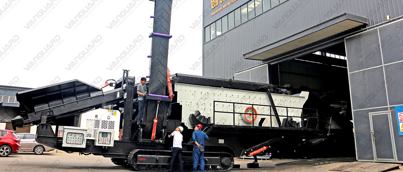 Vanguard Machinery crawler-type mobile jaw crusher plant is suitable for all-natural stones coarse crushing. It adopts crawler-type vehicle chassis, fully hydraulic drive, equipped with large reduction ratio jaw crusher, feeder, belt conveyor, and other auxiliary equipment, forming an integrated group operation mode, a one-stop solution to the problem of materials coarse crushing. Vanguard Machinery crawler-type mobile crushing plant has high reliability and adaptability, whether narrow terrain and harsh environments, and are widely used in road and bridge construction, urban construction, metallurgy, energy, and other fields.
